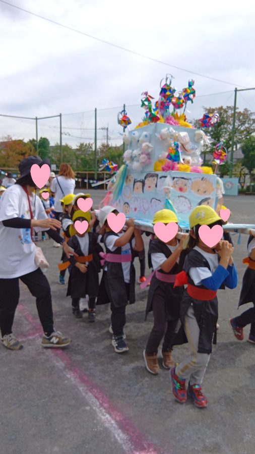 幼児さんで作ったおみこしを「わっしょい!わっしょい!」
