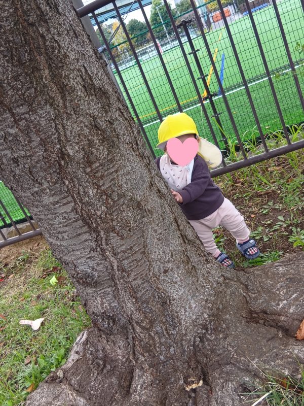 木の後ろから、いないいない…「ばぁ!」(いずみ)