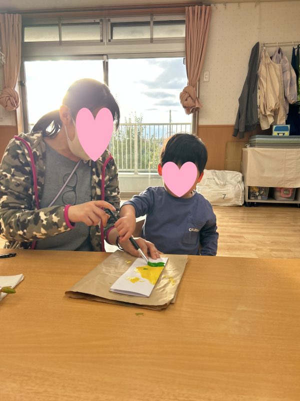 秋の製作で、デカルコマニーをして洋ナシに変身!!(つち)