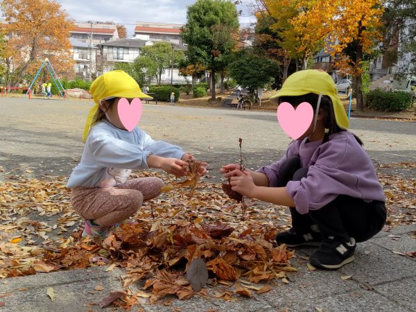 鶴蒔公園では落ち葉のケーキも作ったよ!(幼児)