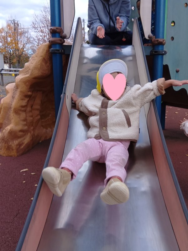 すべり台も慣れてきて、何回も滑るよ!(いずみ)